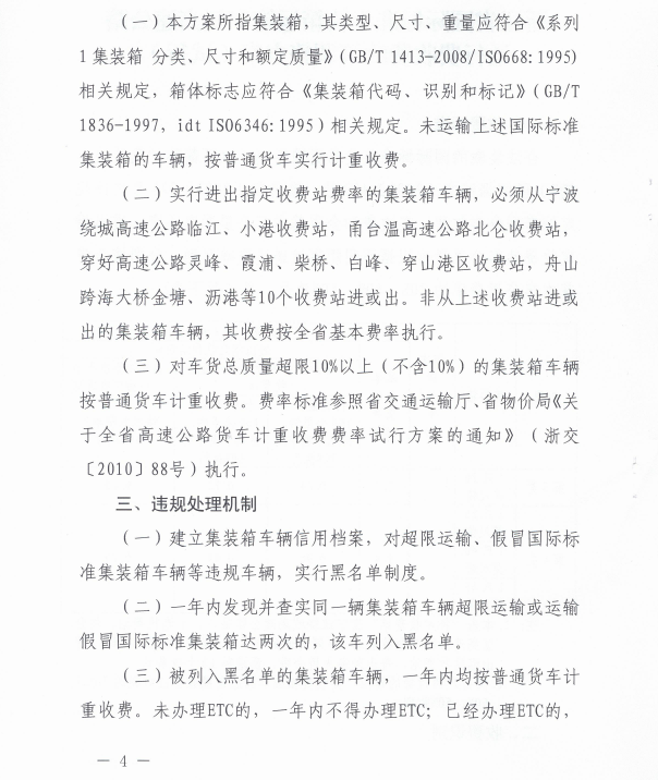 浙江省國際標準集裝箱運輸車輛高速公路通行費收費政策調整方案(試行)
