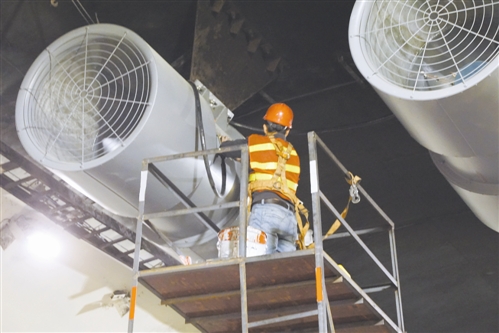 11月1日是隧道整治施工的第四天,工地現場,多個作業面同時鋪開,施工人員三五個一組共近60來人,有序分工,緊鑼密鼓地開展各項作業。施工現場,有的站在活動腳手架上安裝燈具,有的在布管線、接線調試,有的在安裝風機……一項工序銜接著另一項工序,各個工種環環相扣。截止當晚10點30分,隧道內燈具、風機全部安裝完畢,黃土嶺隧道群整治已完成總工程量的60%。