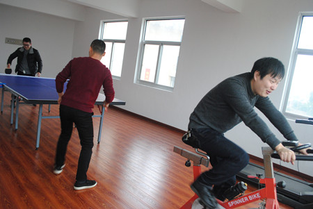 圖為員工在活動(dòng)室鍛煉