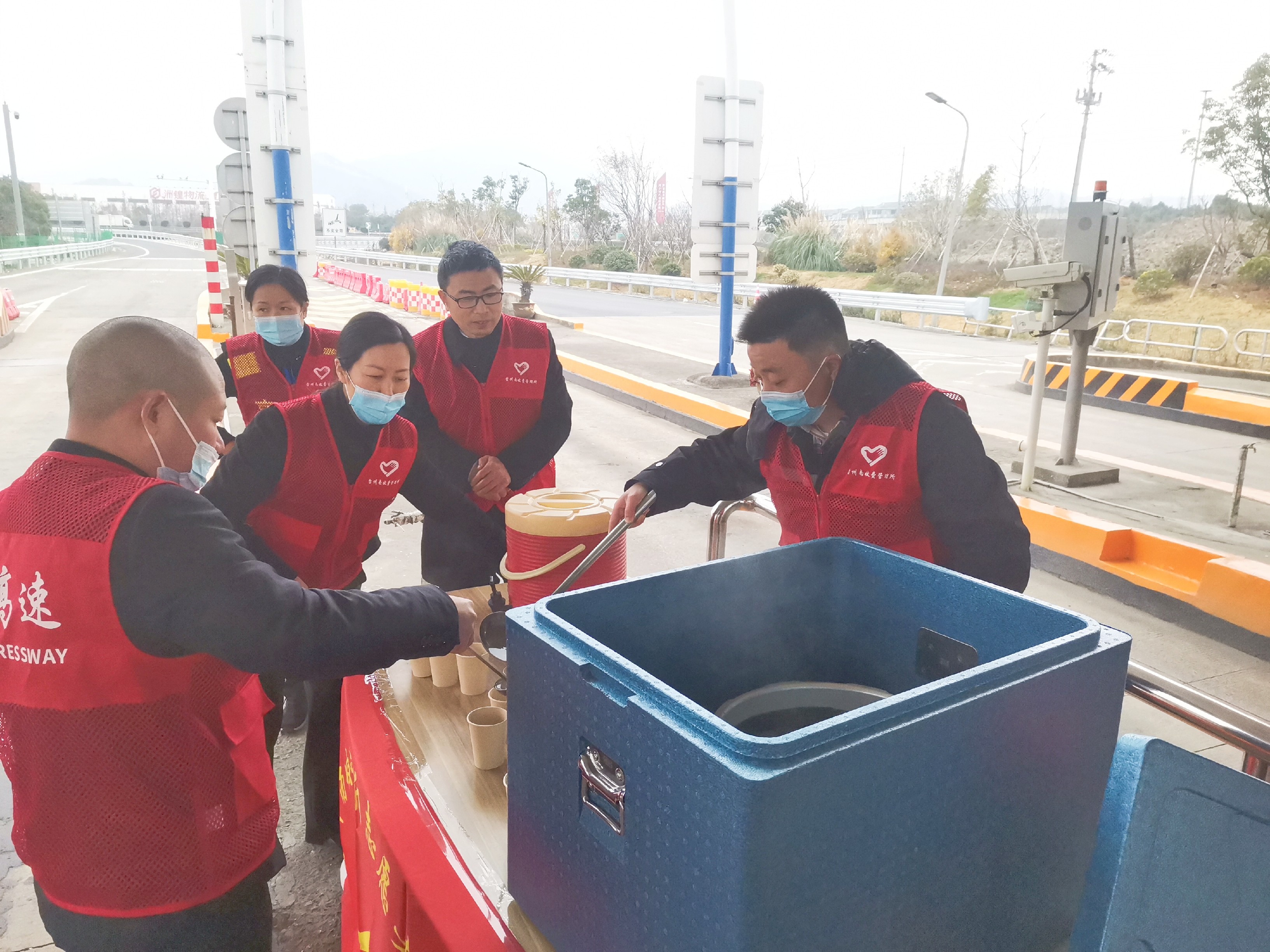 1月7日上午,臺州南收費所黨支部組織“寒冬送溫暖,真情滿高速”活動。該活動由收費所負責人帶頭,全體黨員及青年志愿者踴躍參與。