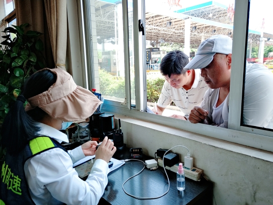 圖為收費(fèi)站人員幫過往司乘激活ETC設(shè)備