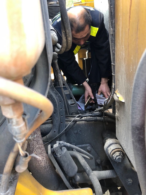 圖為維修現場 救援車輛停在了半路,變成了被救援的車輛,然而施救中心其他的救援車全部行進在路上,一直到下午五點,終于等到姍姍來遲的救援車將已經動彈不得的這輛救援車拖回臺州收費所。經檢查,居然是離合器片損壞,這幾天由于工作量大,施救車輛超負荷運轉,離合器片也超常運作,加劇了磨損,導致離合器片消耗殆盡。