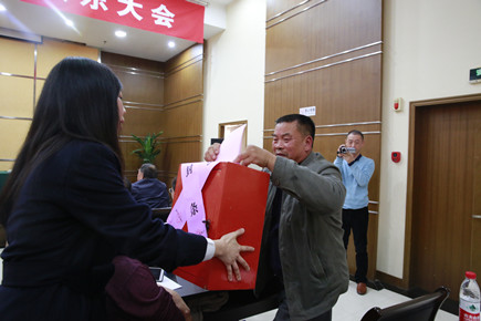圖為總監票人項義超在宣讀投票表決結果