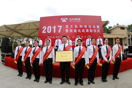 “立正、向后轉(zhuǎn)、齊步走、正步走……”10月19日下午,臺(tái)州收費(fèi)所管理房廣場(chǎng)上,伴隨著一聲聲嘹亮的口號(hào),傳來(lái)一陣陣整齊有力的步伐聲。6支收費(fèi)所、隧道所代表隊(duì),正在場(chǎng)上進(jìn)行緊張的隊(duì)列比賽。最后經(jīng)過(guò)激烈角逐,溫嶺西收費(fèi)所代表隊(duì)獲得了隊(duì)列項(xiàng)目的第一名。隨后,集團(tuán)舉行了以“煉精本領(lǐng)保暢通、同心共慶十九大”為主題的員工技能比武總結(jié)表彰儀式,對(duì)在技能比武獲獎(jiǎng)的員工和集體進(jìn)行了隆重表彰!
