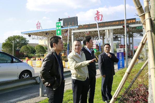 圖為集團副董事長、總經(jīng)理張建平在臺州南收費所主站考察協(xié)調(diào)院橋互通綠化、養(yǎng)護等工作