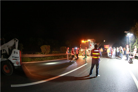 反復(fù)溝通,施工保質(zhì)保進(jìn)度。要在車(chē)流量極大的主干線上夜間順利施工,不僅對(duì)工程質(zhì)量、進(jìn)度負(fù)責(zé),更要對(duì)安全保暢負(fù)責(zé),不能有半點(diǎn)疏忽,不允許絲毫麻痹,而且涉及面極廣。不僅涉及工程部與施工監(jiān)理單位,更涉及到高速交警、路政及運(yùn)營(yíng)管理等多個(gè)部門(mén),前期工程部協(xié)交警、營(yíng)運(yùn)部、監(jiān)理、施工等各相關(guān)單位就施工方案反復(fù)論證,一次次的討論與交流,計(jì)劃改了又改,從提前發(fā)布公告到路口設(shè)立標(biāo)志,從預(yù)警車(chē)輛安排到分流時(shí)間節(jié)點(diǎn),從搶險(xiǎn)預(yù)案到應(yīng)急小分隊(duì)建立,路面的反復(fù)測(cè)量,綠化養(yǎng)護(hù)的同期推進(jìn).....千頭萬(wàn)緒,在于每一個(gè)細(xì)節(jié)的反復(fù)論證。一直到11號(hào)下午,確定了最合理有效的交通組織方案,施工前的安全和技術(shù)方面有了最后的交底,器械設(shè)備、材料、人員班組配備等一一清點(diǎn)得到最終確認(rèn)。