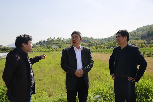 圖為公司領導陳文波在岙林村考察停車區地塊