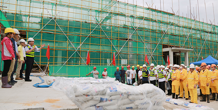 圖為模擬建筑工地面對洪水倒灌的現場應急搶險