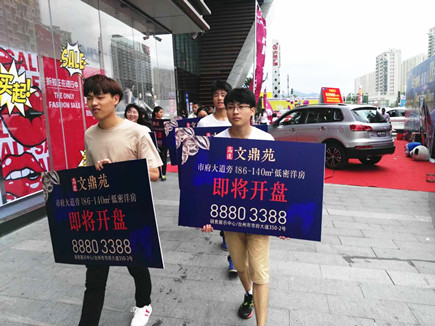 圖為文鼎苑銷售部人員在商場內(nèi)開展宣傳活動 在活動現(xiàn)場,參加人員一邊做陶藝,一邊詢問樓盤詳細(xì)情況,氣氛十分熱烈。同一時間,在萬達(dá)廣場和銀泰商場內(nèi),文鼎苑銷售部的帥哥美女們手持樓盤開盤廣告宣傳牌,他們一個個面帶笑容、朝氣蓬勃、專業(yè)細(xì)致地為前來咨詢的客戶講解樓盤的具體情況。宣傳隊伍所到之處,吸引了大批客戶的關(guān)注。 以上活動是文鼎苑項目首批開盤前期營銷推廣中的其中一個環(huán)節(jié)。為營造良好的銷售氛圍,在前期,仁和公司通過大型戶外廣告、微信公眾號實時更新、新聞媒介重點發(fā)布等,陸續(xù)進(jìn)行多方位媒體宣傳攻勢。同時,謀劃舉辦了“文鼎苑家風(fēng)征集活動”、立夏、母親節(jié)、“520與愛相約”、端午節(jié)、兒童節(jié)等節(jié)假日專題宣傳活動。此外,還安排了銷售人員在周末深入椒江拆遷區(qū)進(jìn)行拓客派單活動。 目前,高速房產(chǎn)集團(tuán)的員工們正戮力同心,奮力拼搏,為全力打響文鼎苑首期開盤炮而努力奮戰(zhàn)。 包啟曉