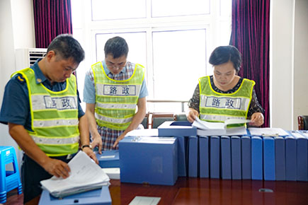 圖為檢查內業(yè)資料現(xiàn)場