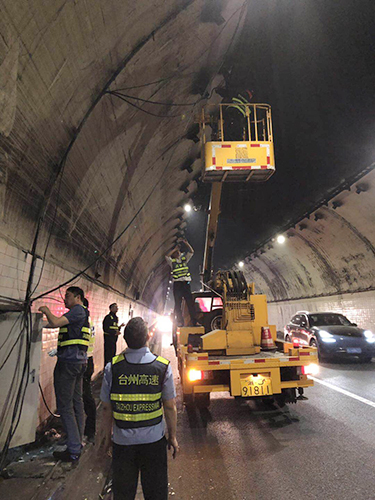 爭分奪秒修電纜 全力以赴保暢通 “大家加把勁兒,先把這根電纜固定好,絕不能影響隧道安全通行!”5月9日早上,黃土嶺隧道所所長李海福在溫向隧道,指揮執勤隊員電纜搶修。
