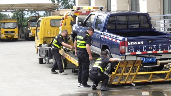 圖為演練現場 此次演練的虛擬情境為隧道內發生車輛起火事件并造成路產損失而開展的救援處置。施救中心在接到指令后,兩人一組,分成兩組,分別駕駛施救車輛和勘查車輛出警奔赴事故現場。 演習過程中,公司安保部對中心人員快速反應、科學處置,及時滅火和現場勘查路產損失等專業能力表示了肯定。