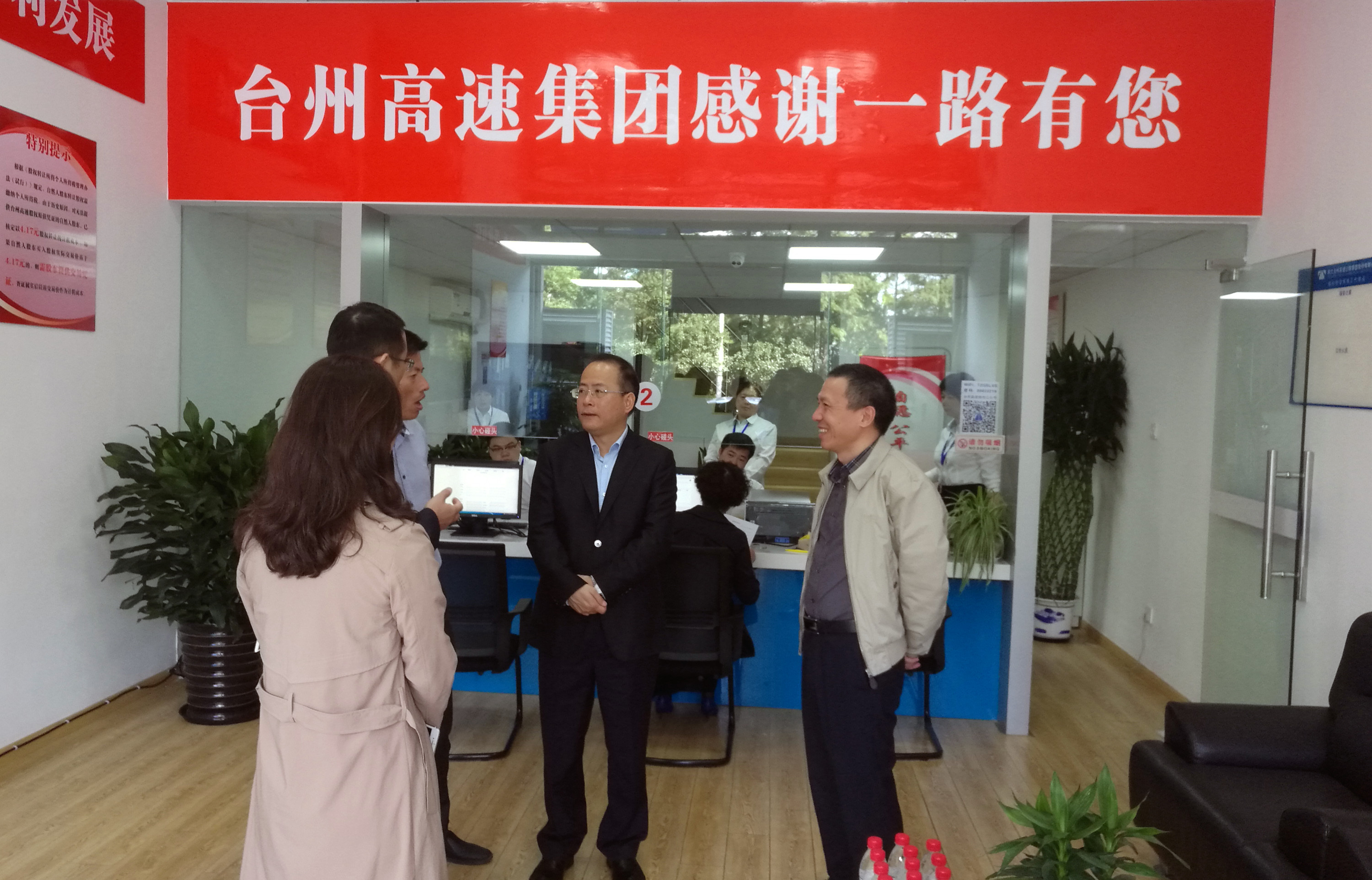 圖為市委常委、常務(wù)副市長(zhǎng)董貴波到臺(tái)州高速股權(quán)椒江收購(gòu)點(diǎn)調(diào)研