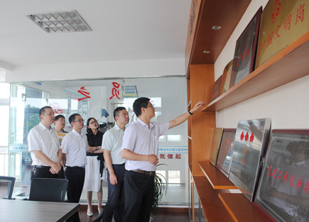 團(tuán)省委領(lǐng)導(dǎo)蒞臨臺(tái)州收費(fèi)所調(diào)研指導(dǎo)文明服務(wù)工作 團(tuán)省委基層工作部部長(zhǎng)陳杰、團(tuán)市委副書記楊賢巍在公司副總經(jīng)理董阿林的陪同下,到臺(tái)州收費(fèi)所調(diào)研指導(dǎo)文明服務(wù)工作,實(shí)地查看宿舍內(nèi)務(wù)整治和崗?fù)の拿鞣?wù),觀看文明服務(wù)視頻。