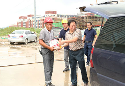 8月1日上午,仁和房產公司經營班子成員來到文鼎苑樓盤工地,慰問高溫天堅守一線的廣大施工人員。