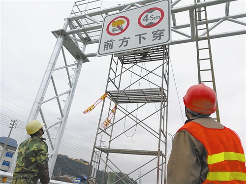 圖為工人在為內(nèi)環(huán)路安裝標志牌。趙鵬攝