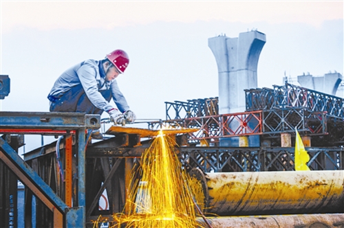 11月18日,內(nèi)環(huán)線8號立交橋上,電工楊斌正在檢修新安裝的路燈。寒風凜冽中,來自安徽的小楊緊了緊衣領,又嫻熟地接拉起電線來。這幾天冷空氣來勢兇猛,但為了內(nèi)環(huán)線早日通車,楊斌和他的伙計們,頂風冒雨,只爭朝夕。