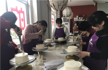 為慶?!叭ぐ恕眹H婦女節,3月16日上午,市政公司組織開展以“做巧手女工,展巾幗風采”為主題的女工活動,集中到朱莉的廚房DIY烘焙制作蛋糕。
