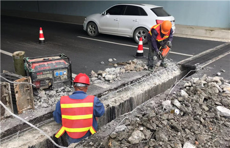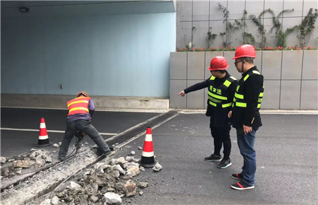 圖為施工現(xiàn)場(chǎng) 臺(tái)州市內(nèi)環(huán)路(10+170~8#立交)工程于2018年3月10日竣工驗(yàn)收,目前處于兩年的保修期范圍內(nèi),由于框架橋的結(jié)構(gòu)特性和當(dāng)?shù)氐牡鼗攸c(diǎn),站西大道下穿跳車的問題一直無法得到有效解決,而這也成了影響內(nèi)環(huán)路行車舒適度的首要問題之一。早在2018年6月12日,市政公司就組織施工單位對(duì)當(dāng)時(shí)的路面進(jìn)行了銑刨后重鋪瀝青路面的施工處理,但是經(jīng)過9個(gè)月的運(yùn)行沉降后,橋頭跳車問題再次出現(xiàn)。本著有險(xiǎn)必修,有錯(cuò)必究的原則,市政公司再次組織施工單位對(duì)該段路面的維修問題進(jìn)行了現(xiàn)場(chǎng)論證,根據(jù)論證結(jié)果進(jìn)行了修復(fù)性施工。