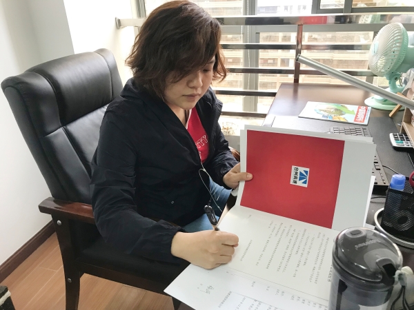圖為勤政廉政讀書心得 早在年初,市政公司每一位員工簽訂了《廉潔履職個人承諾書》,這個月新到的兩名員工剛進公司第一天即簽訂了這份承諾書。